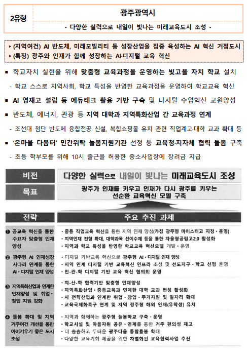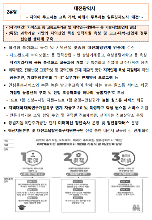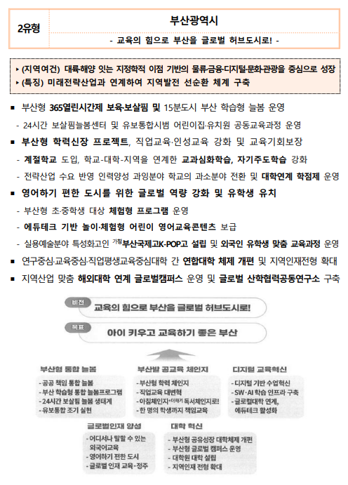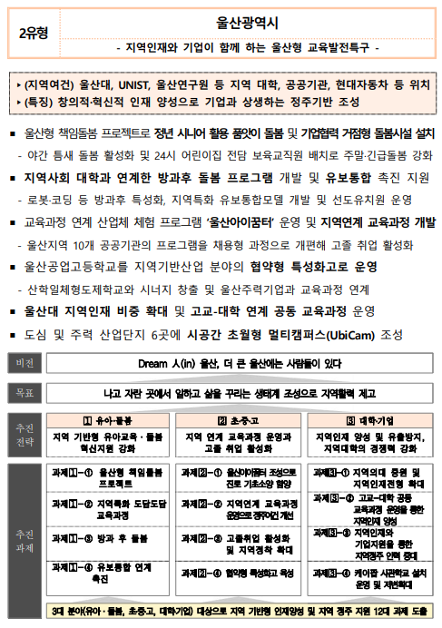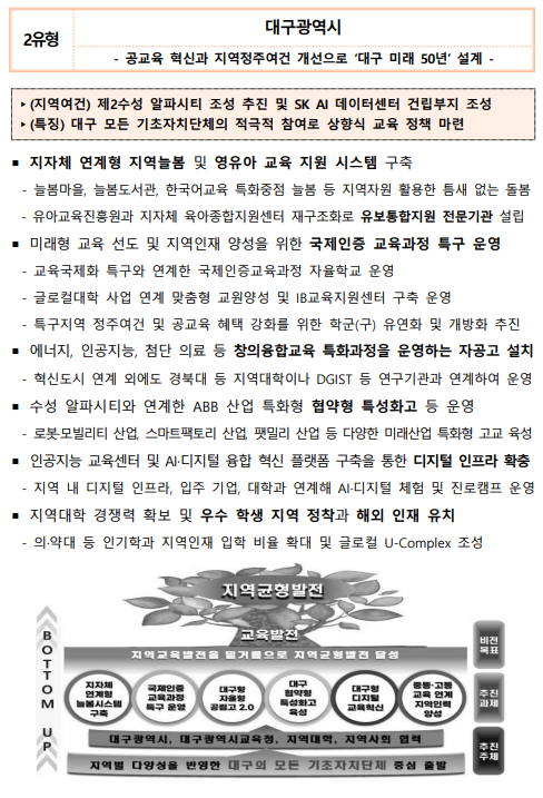 교육발전특구 1차 시범지역 2유형 주요 사업 내용