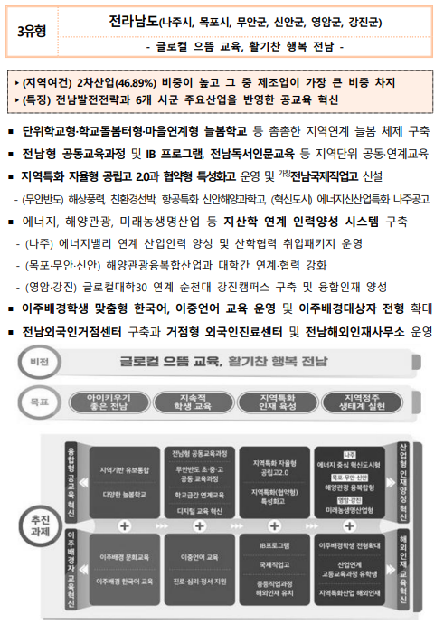 교육발전특구 1차 시범지역 3유형 주요 사업 내용